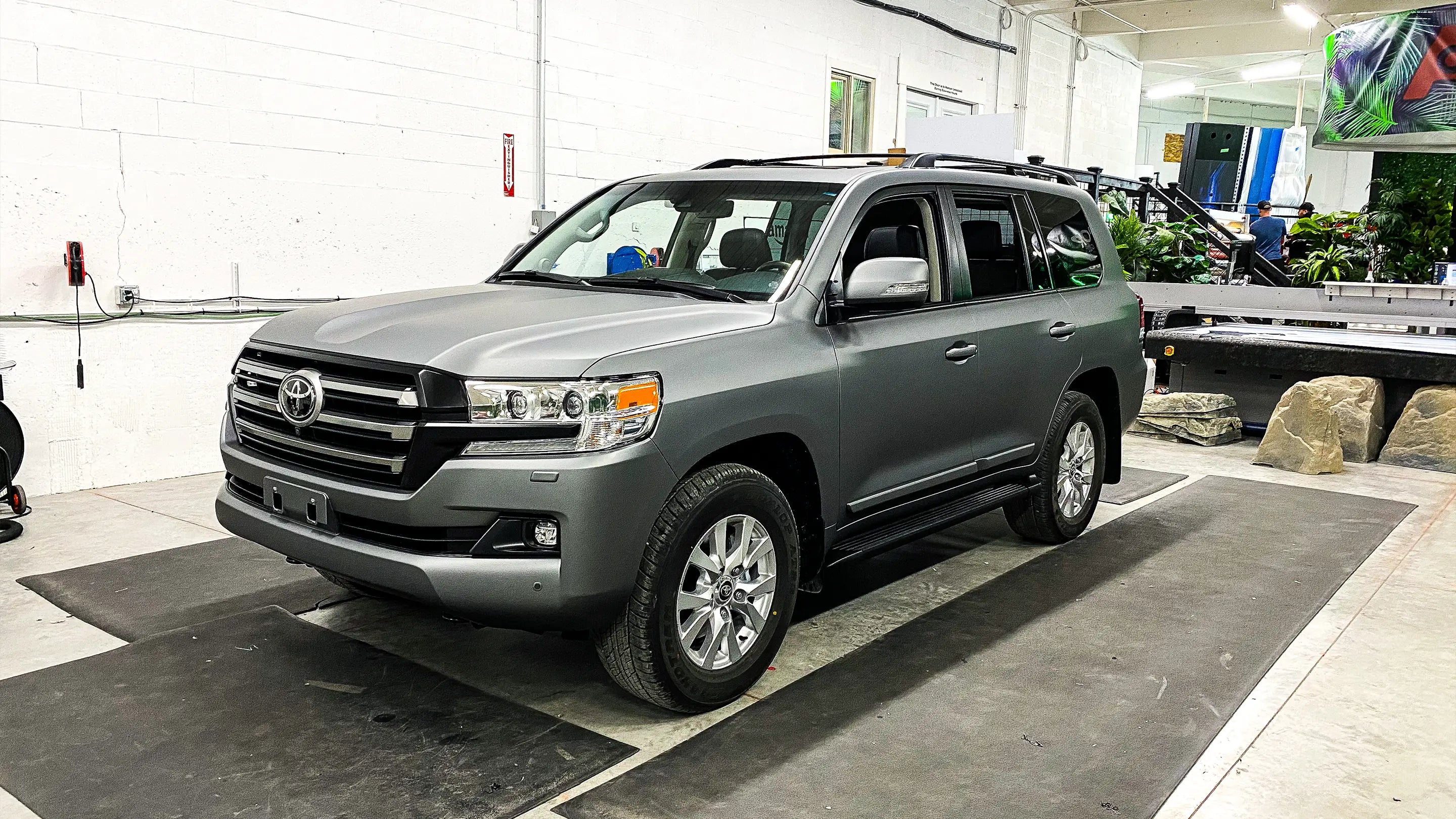 Full vehicle wrap we completed on this Toyota Land Cruiser. The Entire vehicle was wrapped using 3M Matte Charcoal Metallic Wrap Film.