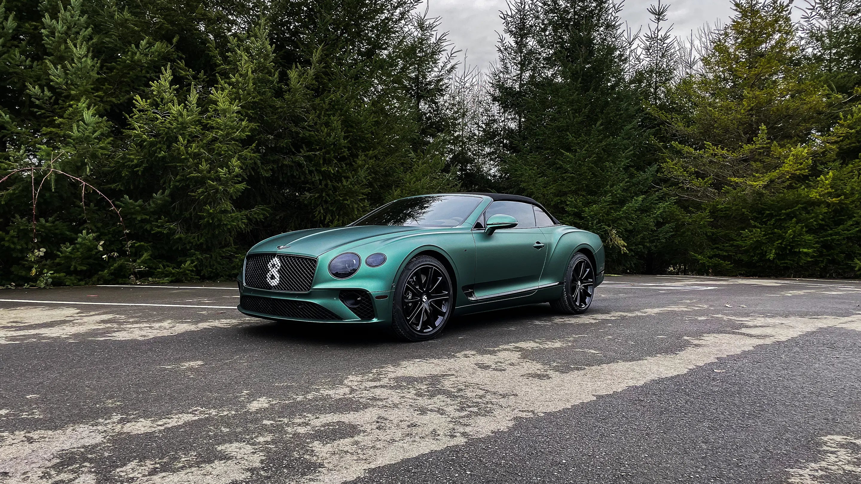 We did a full car wrap on this Bentley including door jams in 3M's Matte Metallic Pine Green wrap film.